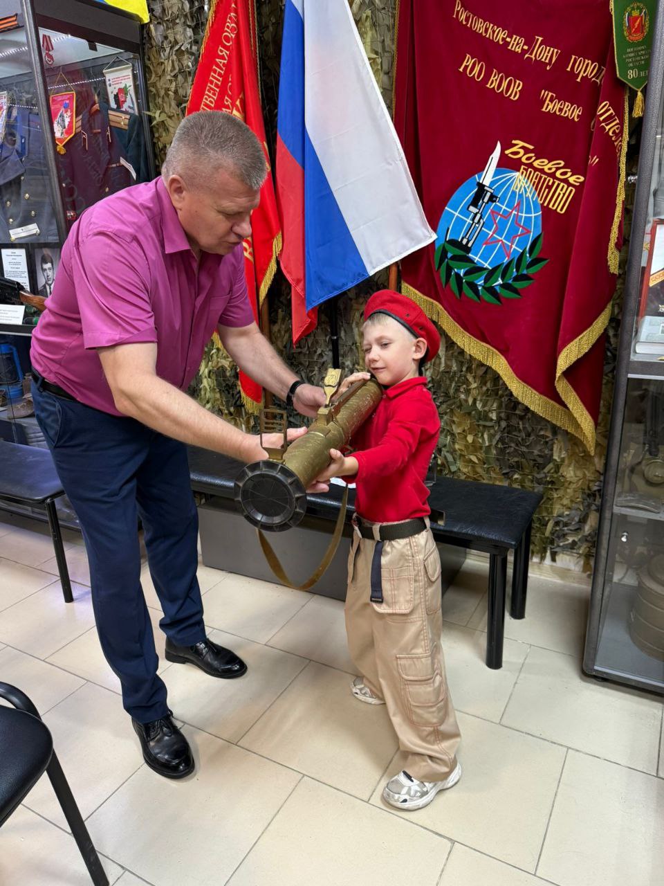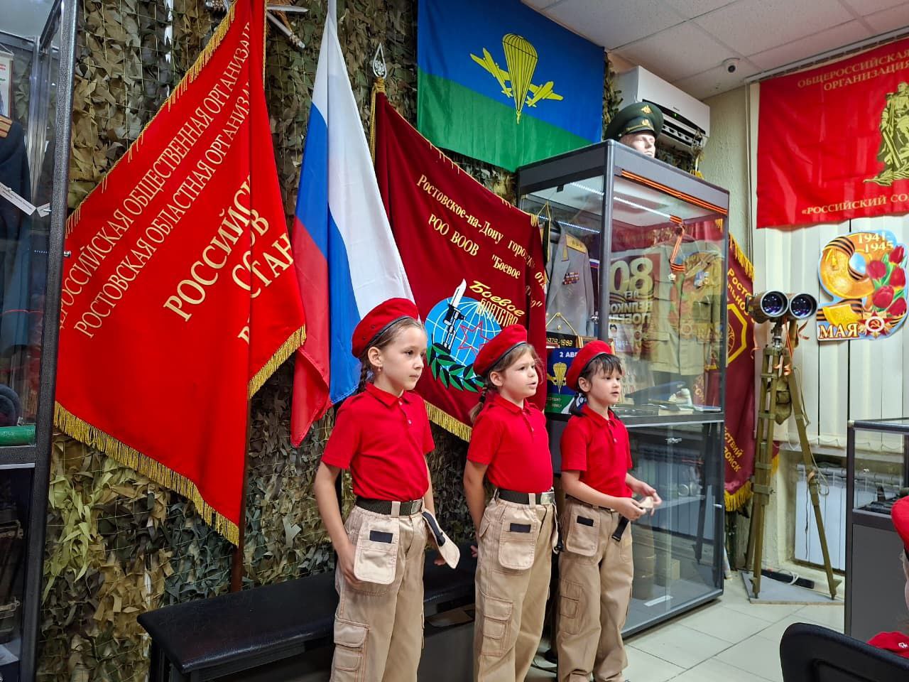 Отряд маленьких патриотов "Служу России" имени героя России Лемеша В.В. посетил музей ветеранов боевых действий. Сотрудники Ростовской региональной организации ветеранов Афганистана и участников локальных войск провели для ребят урок мужества, рассказали об исторических военных конфликтах,проходивших с участием нашей страны, показали военные атрибуты со времён ВОВ, современное оружие и обмундирование. Ребята выступили с рассказами о своих предках, участниках ВОВ, и патриотическими стихотворениями о нашей Родине.