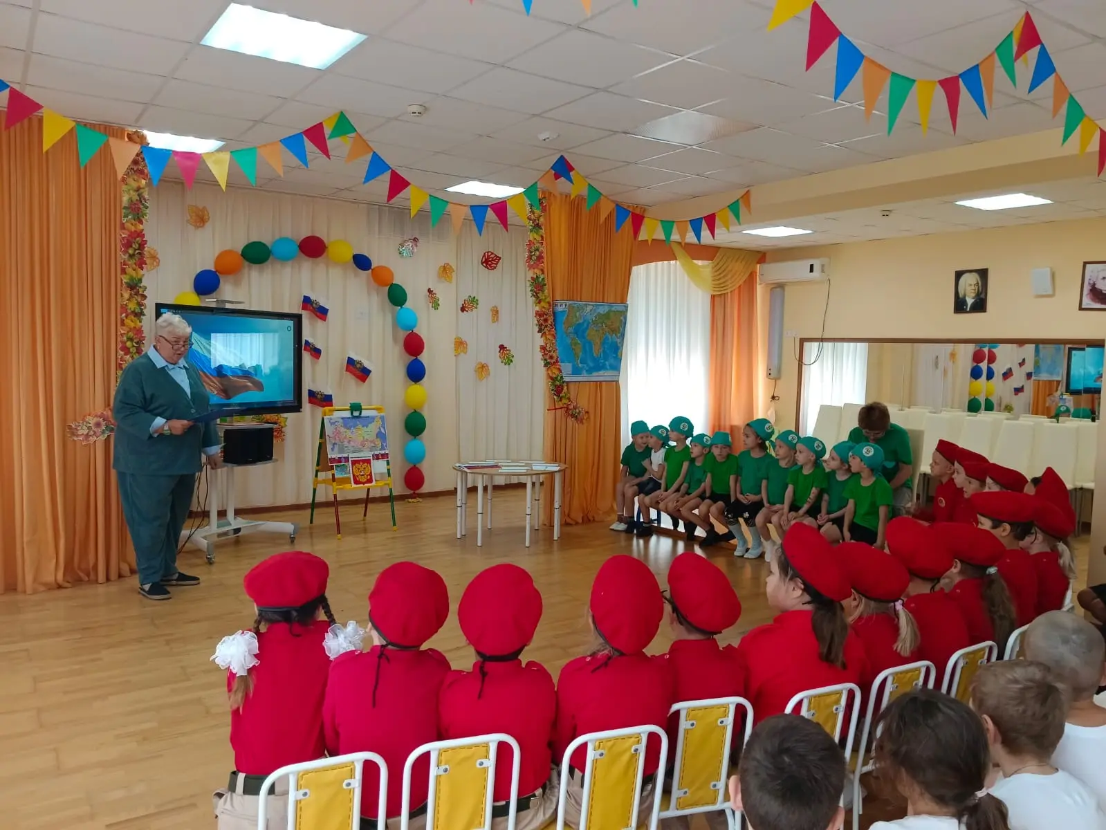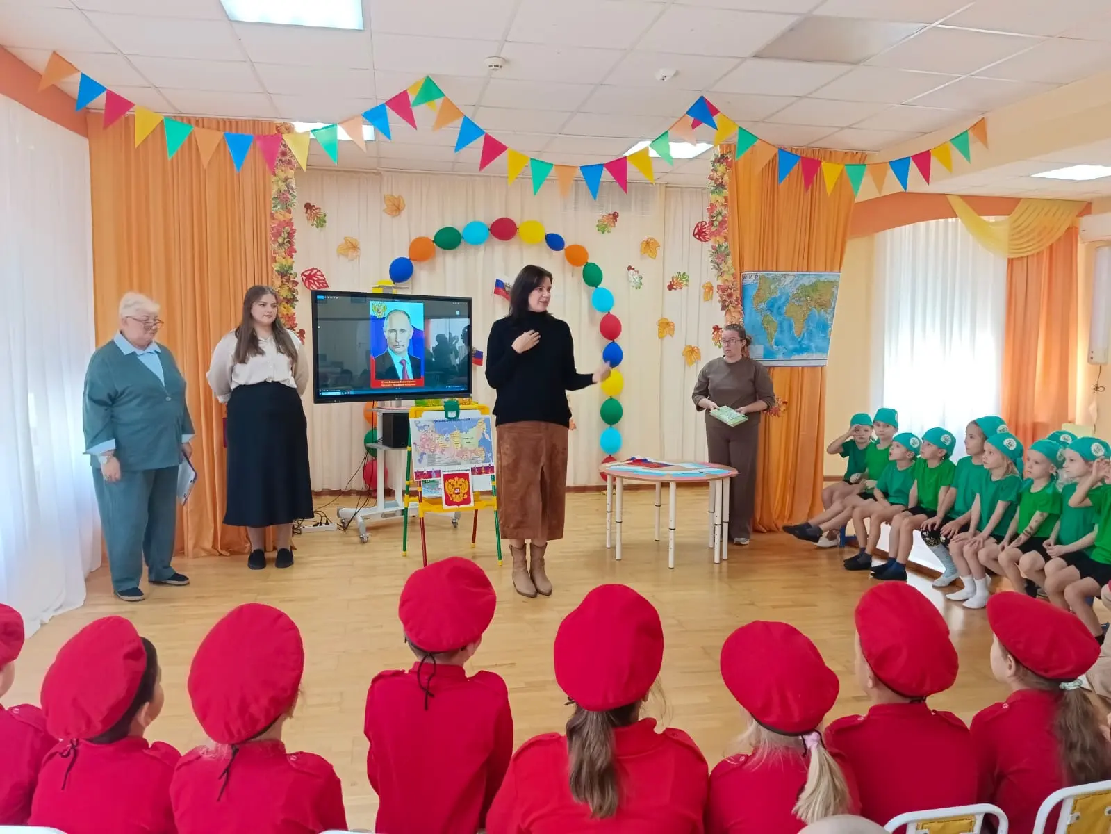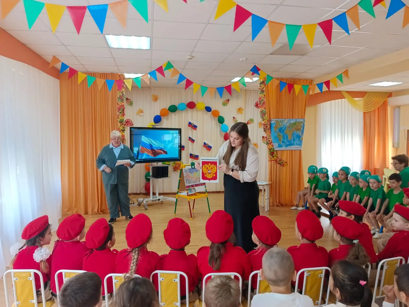 В рамках реализации календарно-тематического плана занятий модуля «Школа маленьких патриотов» с маленькими патриотами отряда «Пламя», имени Ерёменко Ростислава Александровича, кавалера ордена Мужества МБДОУ № 111 было проведено тематическое занятие «Я гражданин России. Государственные символы России: наш флаг, герб , гимн» . Присутствовала на мероприятии супруга нашего Героя Ерёменко Анна Сергеевна. А также ребята Эколята . Педагоги продолжают знакомить с государственной символикой России, рассказали , кто такой гражданин России. Анна Сергеевна пожелала чтоб учебный год был увлекательным , новый день приносил новые знания.